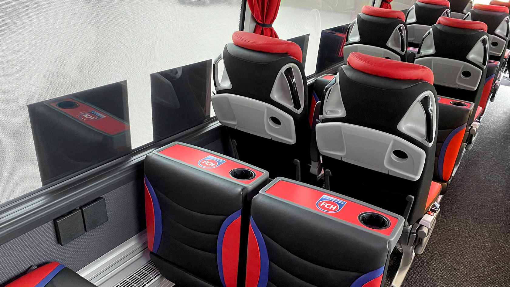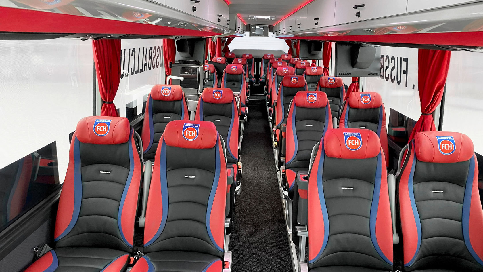Die Spieler sowie das Trainer- und Funktionsteam können in dem individuell ausgerüsteten Reisebus der Setra TopClass bei allen ihren Fahrten auf insgesamt 32 Sitzplätzen bequem reisen – verstellbare Kopfstützen mit eingesticktem FCH‑Logo inbegriffen.